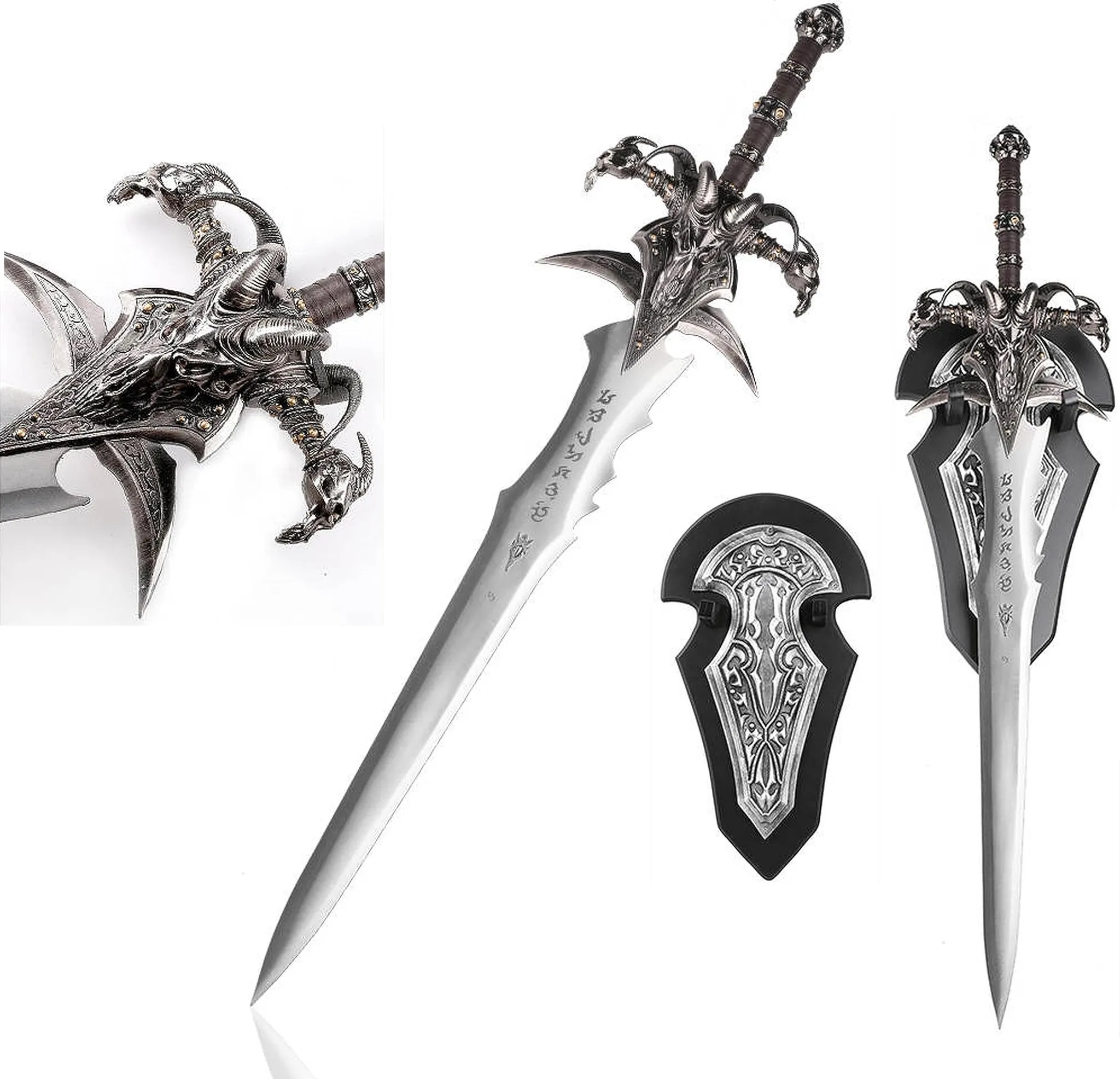 Une pièce incontournable pour tout fan de Warcraft, cosplayeur, ou collectionneur d’armes fantasy, livrée avec un support mural noir et argent pour une exposition digne du Trône de Glace.