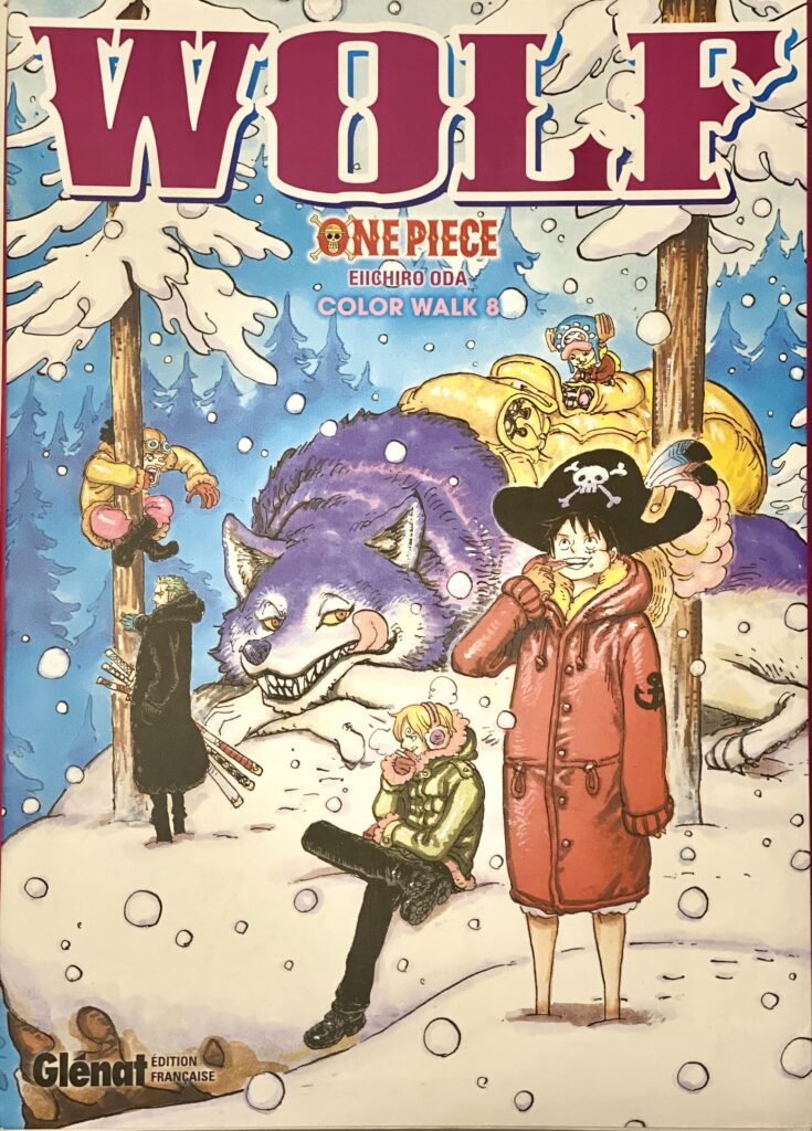 Poursuivant sa route lancée lors des précédents volumes, Eiichiro Oda nous plonge dans des illustrations couleurs grand format magnifiques, chacune ayant accompagné la publication de One Piece. Wolf regroupe les illustrations des arcs de l’île de Dressrosa et de Zo, ainsi qu’un aperçu du pays des Wa, avec les héros en tenue de kabuki. Il propose également une rencontre croisée avec le célèbre Katsuya Terada, qui a notamment réalisé les illustrations pour le Novel Ace dans le One Piece Magazine Vol.1 !